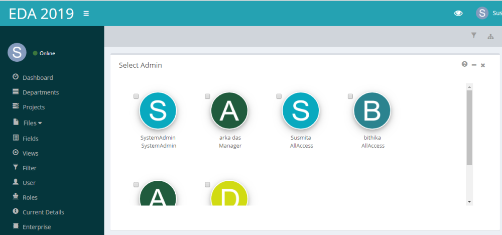 - Select a user as department admin.