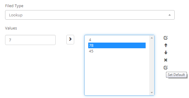 Lookup field:It will take a lookup list values.We can make a value as default value from the lookup value list.We can also edit a lookup value if necessary.Below is the screenshot for lookup field.