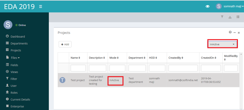 If a project is made inactive then it will go to the inactive list.And we can view the inactive list of project by selecting Inactive option from the drop down list at the right side corner of the page.