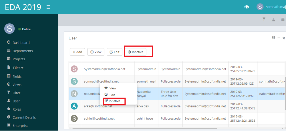 User can also right click on the user and Inactive option is then listed as the context menu.