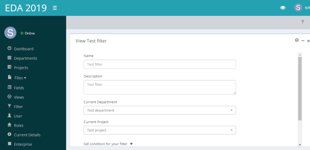 User can also right click on the Filter name and edit/view options are then listed as the context menu.