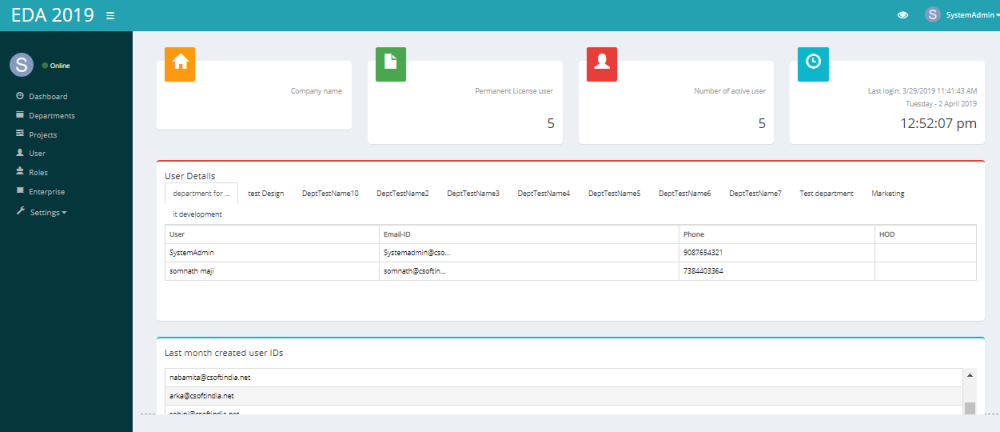 System admin can view all the departments created by other users and do other department related operation.For details see the topic Department