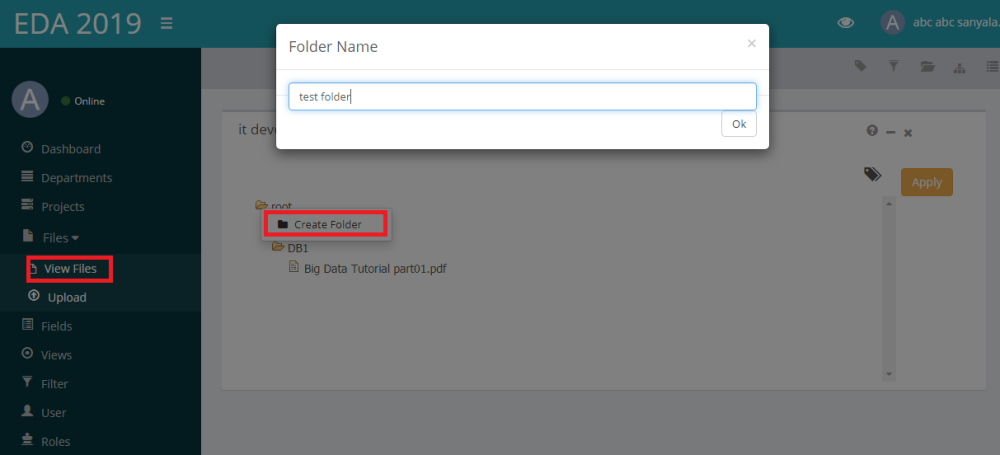 We can create folder in WiseIndex.If we do not create a folder,then a file will be uploaded to root folder.Every new folder will be created under root folder.To create a folder,complete the step: