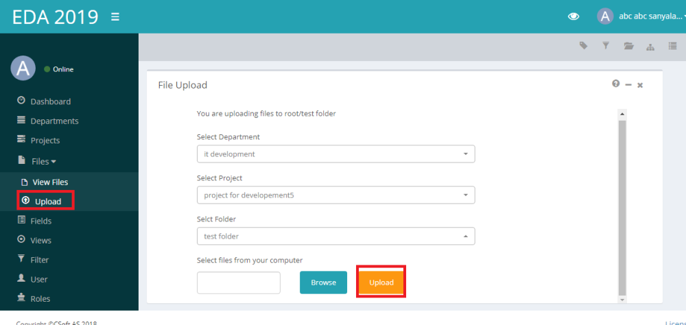 - Select a folder where you wish to upload a file