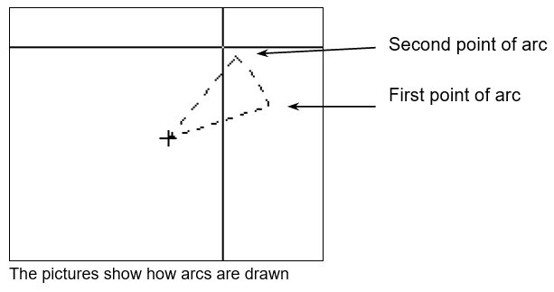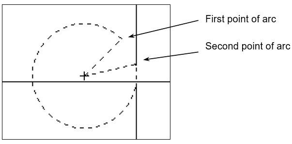 The “direction” in which WiseImage draws an arc is set by the current coordinate system. An arc is drawn in the direction of the Y-axis positive direction to the X-axis positive direction; i.e. when the coordinate axis are set in a standard fashion, arcs are drawn counter clockwise from the first point.