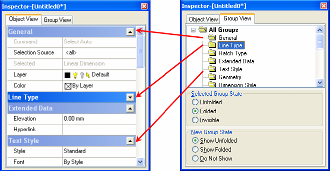 The upper window of the Group View tab contains only those groups which properties ever been shown in the Inspector window. At first, after the program has been installed, this window contains only a few of them, but later, with use of new groups they will be included in this list. For example, the Viewport group will be included after creating a first viewport or after it’s selecting for the first time.