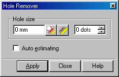 2. Specify the maximum size of raster holes to be removed in the current units (left box) or in dots (right box).