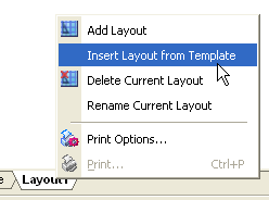 All layout commands are accessible from the Insert menu, the Layouts toolbar and context menu (right click on any layout tab):