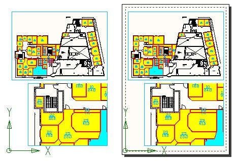 Since viewports are document objects, they can be edited with their grips like other objects. The central grip defines viewport position in layout, while other grips define viewport border size and form.