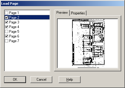 To select the pages to be opened, check the boxes next to the appropriate pages (a preview of each page contents is shown in the Preview tab and information in the Properties tab).