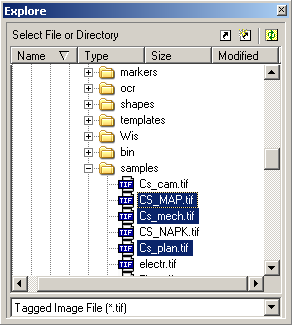 This tool provides all capabilities of working with Windows Explorer files. It allows for opening multiple images at once or inserting several raster images at once, sorting files by type, size, etc.