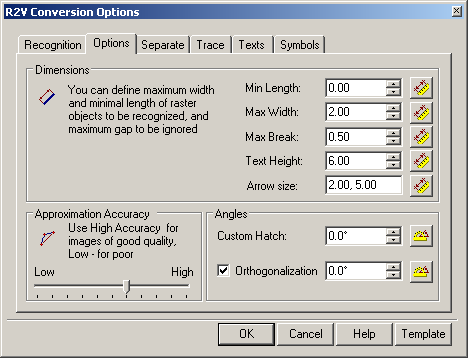 WiseImage Pro uses information on the sizes of raster objects, which is set in the Options tab, to define the optimal performance of algorithms that should vectorize a given raster object.