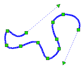 All WiseImage splines have start and end tangents (tangent vectors), which specify the tangency of a spline curve at its start and end points. The end points of the tangent vectors have triangular grips, which are used for specifying tangent’s direction and length.