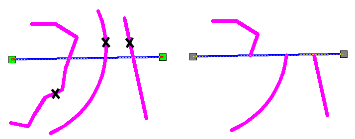 In the following example, first specify as Edge, then select the objects to be trimmed by this Edge. All parts of the selected vector objects located outside the Edge are trimmed.