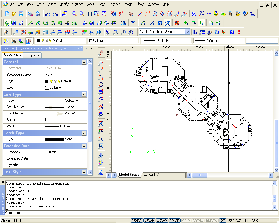 After the WiseImage document has been opened you can see menu, toolbars, document window with layout tabs, UCS icon, cursor, status bar, command line and etc.