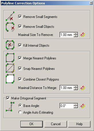 Set up the command options in Polyline Correction Options dialog. To launch this dialog choose Polyline Correction Options from the Correct menu or click the