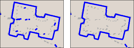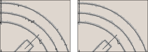 Consolidates polyline nodes connected with a segment which is smaller or equal to the parameter value shown in Minimal Size to remove. A larger value causes the more distant nodes to consolidate into one. This type of correction allows elimination of overlapped and surplus segments. To achieve the best result the Minimal Size need to be correctly set to the remove value. This can be measured this directly from the document.