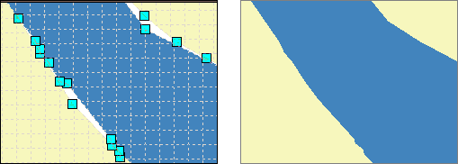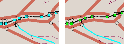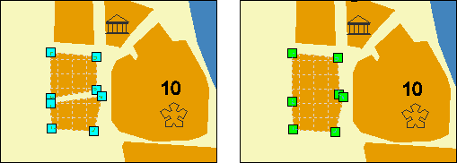 Snaps polylines located near each other. The size and location of one line changes when it is connected to another. This is different to the Combine Closest Polygons operation, where the ‘combination’ does not appear as the two become one.