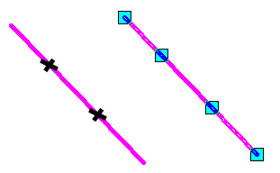 In the following example the raster line is broken into three segments. The break points are specified on the object.