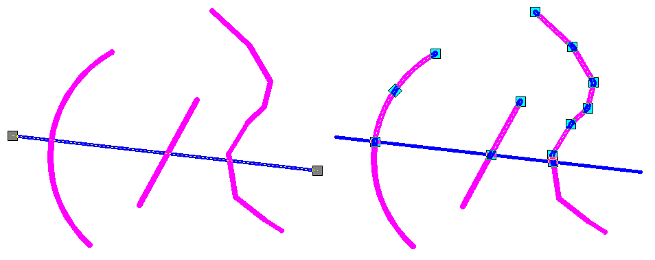 In the following example, first select a line, which will be a break boundary, then specify the objects to be broken. The boundary can be defined by one or more objects.