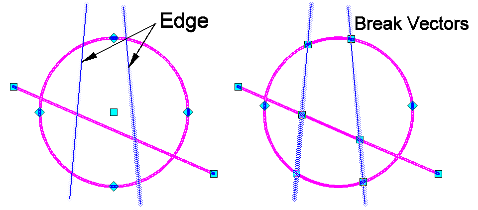 In the following example, first specify an Edge, and then select the objects to be broken by this Edge.