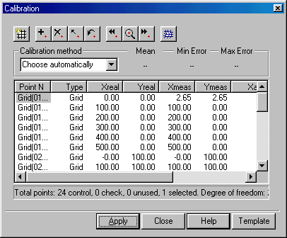 Allows changing the locations of measured and real points and the type of selected calibration pair. |