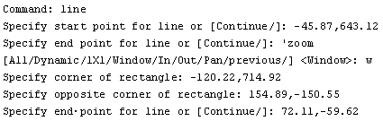 For most commands, the Command Line with five or six lines of previous prompts, called the command history, is sufficient for viewing and editing. To see more lines of command history, you can scroll through the history or resize the command window by dragging its border.