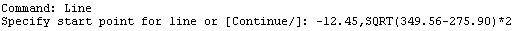 The command line allows input of not only commands, numbers and points, but also of mathematical expressions. This is convenient, when the coordinate or number is not known beforehand but should be calculated proceeding from some conditions.