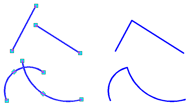 This command is applied to correct vector objects which are supposed to be joined at an intersection by trimming or expanding accordingly. Correct to intersection can be used on a pair of lines, arcs, and circles as well as different combinations of these objects.