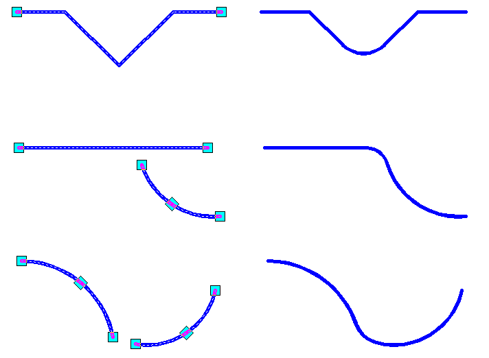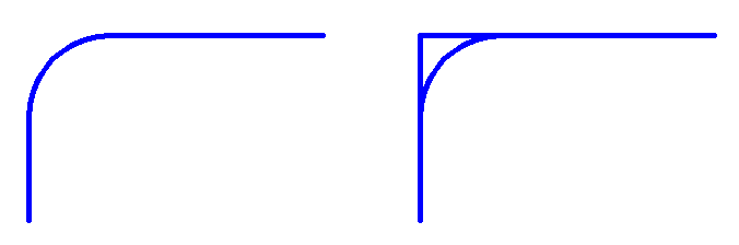 A fillet connects two objects with a smooth fillet arc of a specified radius. A fillet can be applied to lines, arcs, and circles. The radius of an arc that connects filleted object is called a fillet radius. The radius value of a fillet arc, when doubled, cannot be less than the minimum distance between the two filleted objects. When filleting objects, specify a fillet radius and choose to trim or not to trim the filleted vectors.