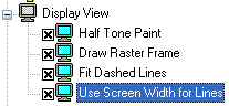 The Use Screen Line Types checkbox in the Preferences dialog fixes size of displayed fill shapes, end markers, hatches, line types and etc. without dependence on the document scale. When this mode is switched on, the Use Screen Width for Lines becomes active automatically.