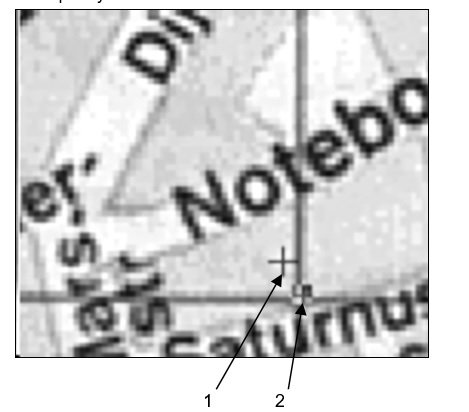 The figure above shows the real (1) and the measured (2) points positions. The real point of the calibration pair sets the known position of the raster grid node, and the measured point shows the position of the raster grid node on the original (distorted) image.