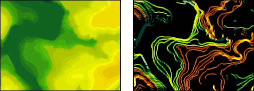 The Segmentation filter finds and highlights the borders on colour raster image. The bigger the difference, the brighter the border segmentation.