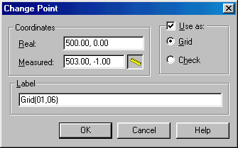 4. Type the coordinates of the real and measured points. The measured point coordinates can be picked on the screen by using the