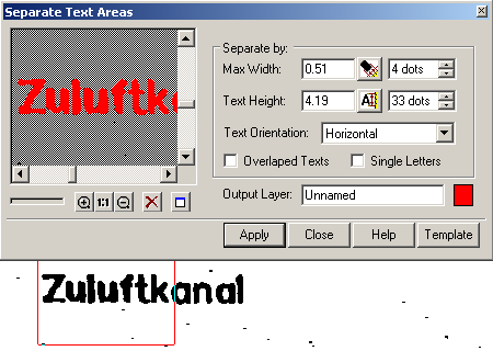 Select the Text Orientation – Horizontal, Horizontal and Vertical or Arbitrary Oriented from the combo-box. If needed, then select the ‘Overlapped Text’, and/or ‘Single Letters’ checkboxes to improve the text recognition quality.