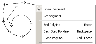During polyline drawing using the context sensitive menu, which appears on right-clicking, to undo the latest drawn segment, and two methods to complete drawing: with or without closing a polyline can be chosen.