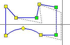 In this mode the polyline grips are highlighted with yellow and the selected vertices with green. Grip colours can be changed in Grip section of the Preferences dialog.
