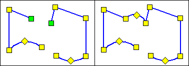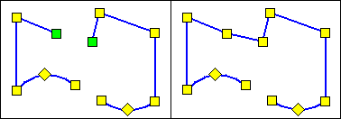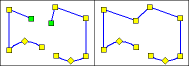 As regards the polylines, the Segment editing mode allows work with polyline segments and multiple vertex selections. In this mode, all operations described above for Vector editing mode are available, plus these additional functions: deleting specified segments and vertices, converting linear segments to arcs and vice versa, joining polylines, separating linear or arc segments to a single object, and dragging selected parts of a polyline.