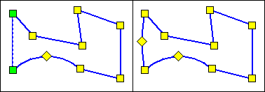 A polyline can be closed and opened in two ways – by joining two extreme vertices or adding a supplementary linear segment.