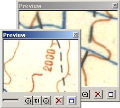 Opens/closes a detached preview window. Pressing this button repeatedly opens several preview windows for different parts of the image. |
