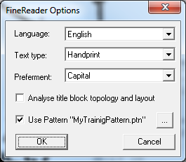 Specify the required Language, Text type and Preferment of the drawing. For tables turn on the “Analyse title block topology and layout”. If the recognition results of the some letters are not correct you can train them using the Trainer button . This dialog box will appears.