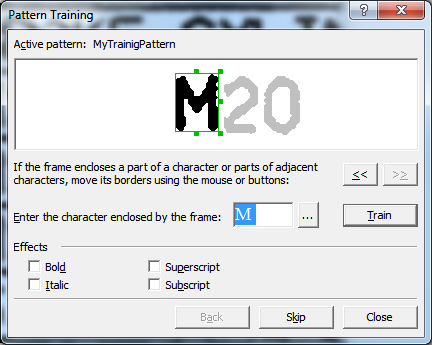 Click the Train button and specify the image part containing the unrecognized area. If Fine Reader Engine has found the unrecognized letters in your selected area you’ll see this dialog box: