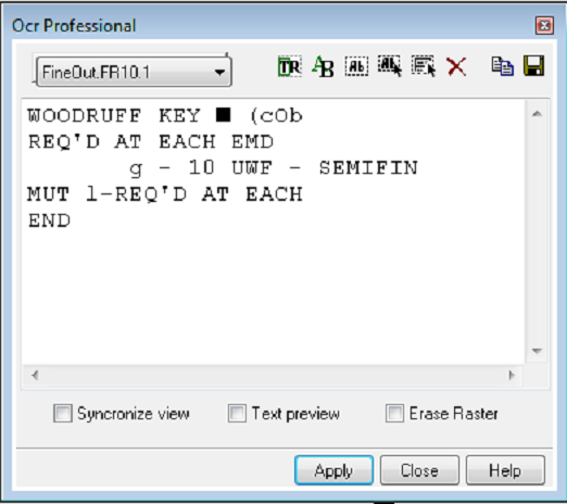 Choosing the Convert > Fine OCR command opens the following dialog window “OCR Professional”.