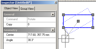 Since selection is also a command, the commands from the Select family are also presented in the Inspector window; after the properties of these commands the properties of selected object(s) are displayed. Thus, the Inspector is used as an additional editing tool. Modify an object on the screen with the mouse, or type precise values in the Inspector boxes.