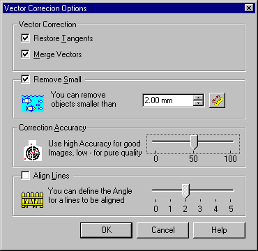 1. Choose Vector Correction Options from the Convert menu or press the