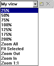 The mechanism of named views consists of one list box of predefined views and two buttons on the right of the Object Properties toolbar. A new view can be created just by typing its name in the edit box or pressing the